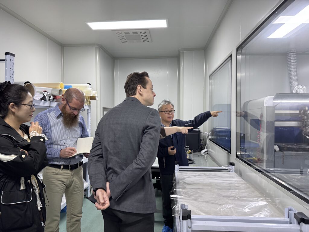考察期间,博世团队深入中科科创新能源研发实验室与无尘车间,全程观摩催化剂研发、规模化生产、膜电极制备及产品品质检测等核心环节,直观了解公司在氢能核心材料领域的技术实力与生产管控水平。