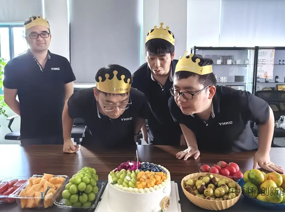 在全场注视与期待中,寿星们闭眼合十,默默许下心愿——或许是个人成长进阶,或许是团队协作顺遂,又或是生活小确幸。我们始终相信,这份期许会如深耕的氢能事业般,在时光浇灌下冲破阻碍、点亮未来,绽放璀璨光芒。